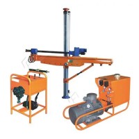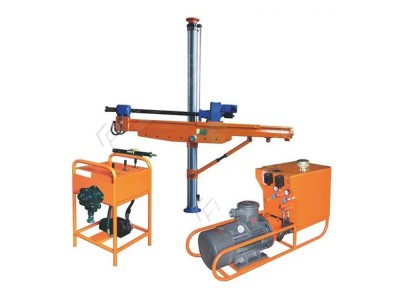 1、结构简易,运输、拆装方便,整机重量轻、操作简单、故障率低,立柱支撑高度根据巷道高度而定,自身配有支撑和固定导轨的支柱,采用顶天立地的顶紧方式,导轨和立柱之间采用了360度可调的连接盘,保证了钻机打孔角度的360度可调,主机自带液压夹持器,能更加便利的拆卸钻杆。
