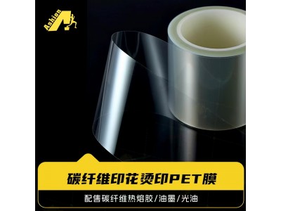 工艺:1先在碳纤离型膜上印光油,2再印碳纤维转印系列油墨,3再印碳纤维热熔胶,4滚烫至碳纤维表面,5撕掉离型PET即可