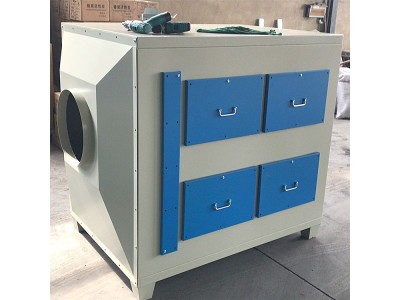 使废气与大表面的多孔性活性炭吸附剂相接触,废气中的污染物被吸附在活性炭表面上,使其与气体混合物分离,净化后的气体高空排放。活性炭环保箱是一种干式废气处理设备