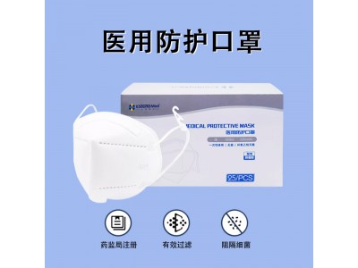 适用范围:供医疗工作环境中,过滤空气中的颗粒物、阻隔飞沫、血液、体液、分泌物等 结构组成 口罩体(含鼻夹)、口罩带和内层由纺粘非织造布制成,二层由熔喷布制成,三层和四层为聚丙烯熔喷布制成的过滤层。耳挂式口罩带为氨纶和锦纶材料制成的弹性带,头带式口罩带为锦纶材料制成的弹性带。 产品性能 口罩应覆盖佩戴者的口鼻部,表面无破损、污渍,鼻夹应有可调性,断裂强力和过滤效率应符合相关标准。 使用方法 检查包装是否完好,确认生产日期和有效期。 正确佩戴口罩,确保口罩与面部密合。 使用后,不要接触口罩(污染面),正确摘除并丢弃。