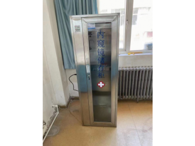 产品采用优质304不锈钢材料制成 软镜柜内设计有透明亚克力制成的内镜悬挂系统 配备紫外线灯、活检钳挂钩 外形尺寸:550*450*1600mm