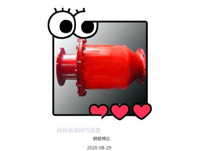 防回气装置内置止回挡板可在水环泵停泵时,迅速封闭管路,阻止瓦斯气体以及管路中的积存水重新流回井下。按照气体流向,在吸气管路中,安装在排渣器后面,防回火装置前面,在排气管路中,该装置安装在三防装置的末位,是后面一道三防装置。