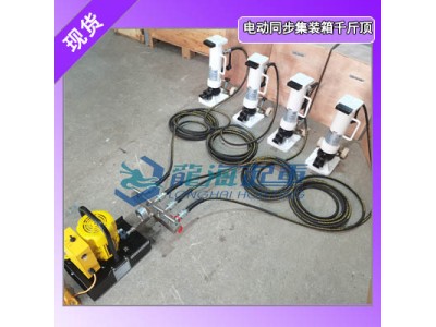 2、电动同步20英寸集装箱千斤顶配有电动泵和液压油管,可实现多台千斤顶同步顶升,同步误差<1厘米,远程操作更安全