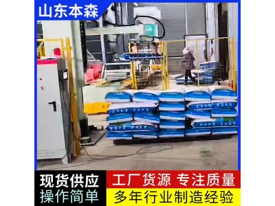 袋装味精码垛本森立柱式码包机器人是一种专为食品、化工等行业的袋装物料(如味精、面粉、化肥等)设计的自动化设备。其核心结构为垂直立柱支撑的多关节机械臂,末端配备可更换的抓取装置(如夹爪、吸盘等),通过程序控制实现从输送线到托盘的高效、精准码垛作业,适用于味精等袋装物料的自动化处理。